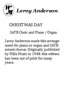 Christmas Day (0:00) SATB Choir & Piano or Organ Score 9" x 12" (6 pp) $8.00