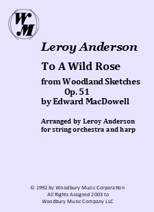 Compositions by Leroy Anderson that are available from Woodbury Music Company include: Arietta, Balladette, Clarinet Candy, The Captains And The Kings, Chicken Reel, Christmas Day (Holst/arr. L. Anderson), The First Day of Spring, Forgotten Dreams, The Golden Years, Governor Bradford March, Home Stretch, Lullaby of the Drums [beginning orchestra or beginning band], The Phantom Regiment, Pirate Dance, Promenade, Scottish Suite (I. Bonnie Dundee II. Turn Ye To Me III. The Bluebells of Scotland IV. The Campbells Are Coming), Song of the Bells (ORCH and CB), Summer Skies, A Christmas Festival (SATB Choir), Suite of Carols for Brass Choir, MacDowell's "To A Wild Rose" (SO and Harp)